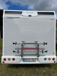 Markise 3 m, Fahrradträger für 2 Fahrräder, große Heckgarage, Parkwarntafel, Zwei 11 kg Gasflaschen, CEE Adapterkabel, 20 m Kabeltrommel, Ausgleichskeile, Feuerlöscher,